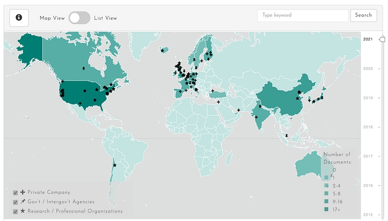 The tool in the image below (The Box) developed by AI Ethics Lab, where Cansu Canca is the founder and director, is one of the Lab’s major projects. It is part of a toolkit (Dynamics of AI Principles) that systematizes and analyzes all AI principles published around the world. Most companies and countries by now have put forth their AI principles. The toolkit Dynamics helps us understand how these principles develop over time and in different geographies, and how they compare with each other. The Box takes one step further and puts these principles in a conceptually coherent and practically applicable format. The goal of this tool is to help practitioners and researchers ask each of the questions associated with the principles and evaluate how their work rates ethically.